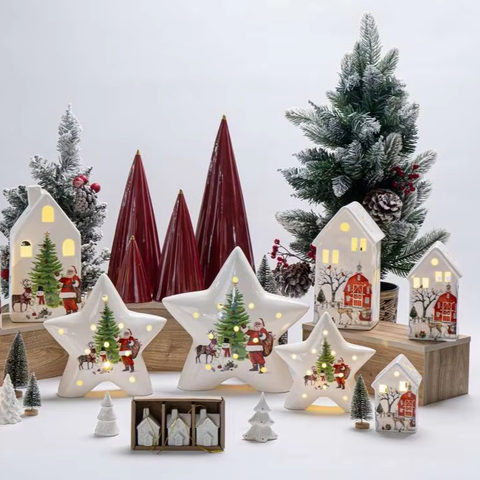 Novo Criativo Pequeno Branco LED-Lighted Cerâmica Natal Vila Casa Mesa Porcelana Xmas Tree Craft Holiday Decor Collection